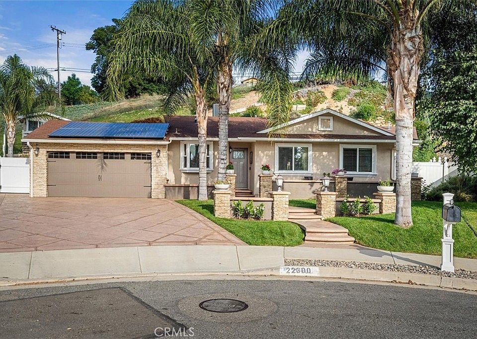 Simply stunning end of the cul-de-sac single story home. Gorgeous landscape and hardscape, fresh exterior paint and a newer front door welcome you as you walk up and speak to the beauty and pride of ownership you'll find throughout this highly upgraded home. With gorgeous floors, fresh modern paint, cedar lined closet skylights, remodeled kitchen and a fully custom built primary bedroom and spa-like bathroom, you'll appreciate that not a detail of care was overlooked. The modern kitchen boasts upgraded, soft close white cabinetry, stone countertops, stainless steel appliances, beautiful tile floors and a unique copper kitchen sink with a big window overlooking your cul-de-sac. The large primary room was remodeled to add square footage and has french doors that go out to a private patio area with a pergola. Plumbed for a spa if you want to add one to this tranquil space. The primary bathroom is gorgeous! This was also enlarged and boasts a big soaker tub, shower and classic tilework. Double sink and a vanity area add to the luxurious space. Large walk-in closet with ample storage, custom shelving and power. Solid wood interior doors recently installed. Off the living room you will find a light-filled office currently used as a playroom. The living room leads out to another large patio space, fully covered with outdoor speakers for year round entertaining. This patio is also plumbed for a spa and has a nice sized gas fire pit to gather. The shed is included. Enjoy the low maintenance grass turf in the back. The real surprise is the hillside casita built above the yard with a nice view from the porch and a completely private space to get away. Fully finished (but not permitted) this space has lots of options...office? Music room? Yoga space? Private bar? The insulated garage is just as nice as the rest of this immaculate home. Tons of built in cabinetry, epoxy floors, laundry area, work bench and overhead storage. AC was recently replaced and leased solar panels add potential savings. This neighborhood is close to schools, shopping & dining yet nestled up against a hill for lots of rear privacy. Did I mention the living room and dining room furniture is included?! This home is a rare find to say the least.