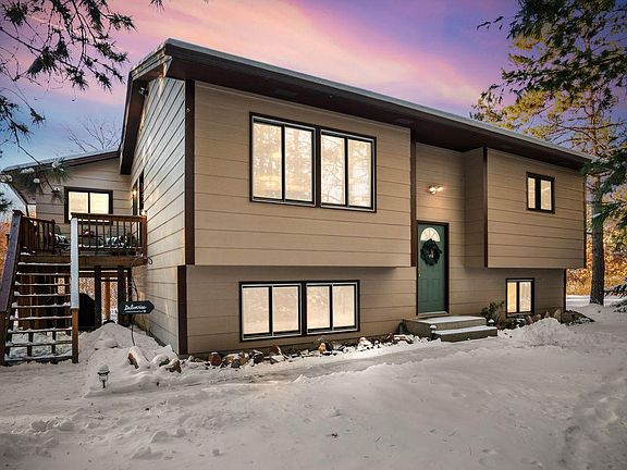Rare find!! This beautifully updated home on two gorgeous wooded private acres has it all! From the wooded drive that leads you into your private haven, to the updated kitchen with granite counters and large island, inviting family room with windows on four sides (AND skylights!), gorgeous updated bathroom with walk in shower, new flooring, paint and light fixtures throughout, new range, dishwasher and microwave! The yard boasts apple, cherry, and pear trees, as well as grape vines and berries. The wrap around deck is prefect to watch the sunsets and wildlife in the yard. On cold winter days, enjoy the same views from the sun room with the cozy fireplace! Bring your toys to the AMPLE garage space with the detached garage and incredible shop! The shop is insulated, heated, cooled and has a huge loft for extra storage! If you are looking for a very well maintained home that feels like the north woods but is commuting distance to the cities, this is it! Welcome Home!