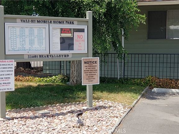 Looking for a mobile to call home? Here it is. Located in the outskirts of Apple Valley in Vali-Hi Mobile Home Park, a quiet park not too far from shopping. This cute little home has all the charm of a big home, without the hassle. This home offers 2 bedrooms and 2 bathrooms. Upgraded kitchen with Travertine Counters. Laminate flooring in living room, kitchen and hall way. Primary bedroom has a walk in closet. 2nd bedroom has built in drawers and a big closet. Indoor laundry room makes doing laundry convenient. Lot is fenced in and has a metal shed for storage. Front porch is covered and has been covered with indoor/outdoor carpet and is a great place to enjoy the evenings. Don't let this one pass you by!