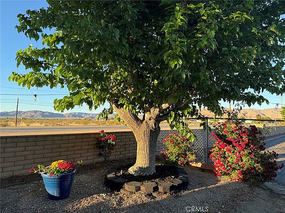 Curb appeal includes humongous no maintenance yard with artificial grass and large trees maintained by park owner and watered with set sprinkler system ) the yard is completely fenced in with only one lovely neighbor to the left..so much privacy!! large porch is protected by huge new roof and huge carport on the right!large shed is included! new wood like laminate has been installed 2 years ago and matches throughout.freshly painted. the living room is very very large and includes 75 inch flat screen above an electric fireplace- it boasts an interchangeable couch that can be configured any way. the dining room is open and airy with so much storage space in the built in cabinets! the kitchen was completely redone and has new stainless appliances and top of the line dishwasher and deep wide sink! the fridge has built in ice maker! extra counter space was created for coffee nook or bar – gas washer dryer is new- the pantry is so big! The counters were custom made to look like real stone! The master bedroom could really be two bdrms cuz its so big and has so much storage and hand made closets! It fits a king size bed on an adjustable frame! The 2nd bdrm has two queen beds and lots of cube storage-both bdrms have large tvs and desks-the house is so comfy for a small family and has central ac and heat which were well maintained!!! The jacks underneath are not very old and are in great condition!! The community is quiet and makes you feel safe and only 35 minutes from big bear!! Apple valley HS and Alta vista learning center are only 5 mins away!
