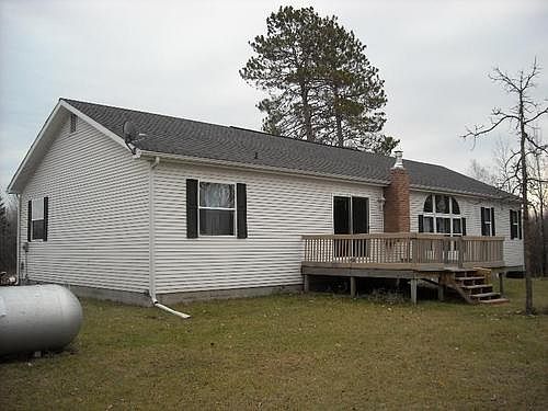 Large, walk-out style rambler home complete with 40' x 60' shop, 30' x 30' garage, Hwy #2 frontage, wooded acreage, large deck, vaulted ceilings, knotty pine tongue & groove in basement.