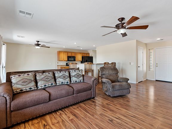 *PARTIALLY FURNISHED OR UNFURNISHED* Move-in Ready, Super Clean, 3 Bedroom, 2 Bath, 2 Car Garage, RV Gate and RV Parking. Beautiful Kitchen w/lots of Storage and Counter Space, 4 Barstools at the Breakfast Bar overlooking the Great Room. Oversized Backyard, Extended Covered Patio with Ceiling Fans and a Block Wall. Storage Cabinets in the 2 Car Garage and a Large RV Pad inside the RV Gate. New Interior Paint 2023, New Exterior Paint 2023, New Wood Laminate Floors 2023 and New Wood Blinds throughout. The Primary Suite has a walk-in closet; the bath has a separate tub and shower. The 2 additional bedrooms have nice size closets. All appliances including New Side by Side Refrigerator 2025, Front Loading Washer & Dryer, Microwave, Range, Newer Dishwasher. Owner/Agent come see today!