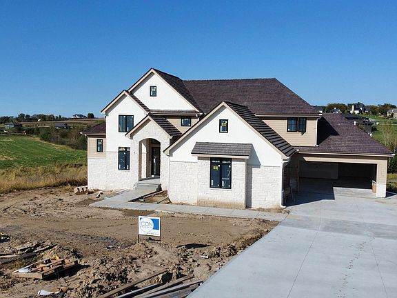 Acreage living awaits in this extraordinary 1.5-story home by iCON Homes, perfectly situated on 1.5 acres in the highly sought-after neighborhood The Estates at Wynnwood. Step inside and be captivated by the circular staircase, open great room with its striking floor-to-ceiling brick fireplace, a chef-inspired gourmet kitchen featuring a stunning waterfall island, and an expansive walk-in pantry. Your private oasis offers panoramic views of lush greenery and mature trees, creating an unparalleled sense of peace and privacy. The main floor boasts a luxurious primary suite with a spa-like bath, including a soaker tub, walk-in shower, and huge custom closet, plus a convenient home office. Upstairs, you’ll find three additional bedrooms, two baths, and a spacious bonus room. The lower level is an entertainer’s dream—complete with an 11 foot drooped floor gym, full bar, additional bedroom with bath, and a large rec room and additional indoor/outdoor storage. This home truly has it all!