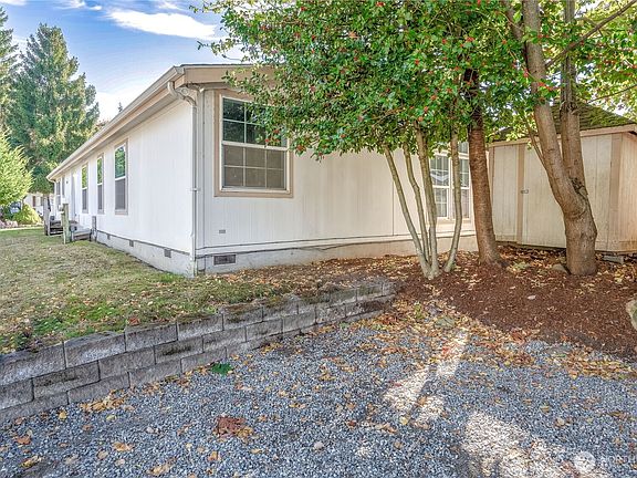 Own both the home and the land in Kenton Firs. No monthly lease payments. 3 Bedrooms, 2 Full Baths. Primary Bath has soaking tub and separate shower. New interior paint and flooring. Open concept Kitchen, Dining Room, Living Room with fireplace and ceiling fan and another Family Room with ceiling fan. All appliances stay. Outside you will find 2 storage units on a nice corner lot. Several common areas to enjoy.