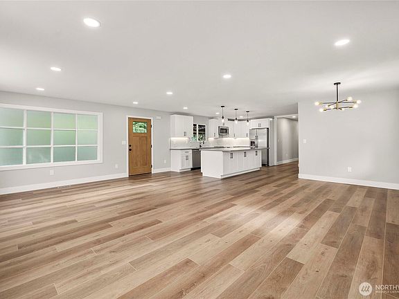 Welcome to this spacious 3-bedroom, 2-bath manufactured home on its OWN land—no lot rent, and no age restrictions! Nestled in the desirable Kenton Firs community, you'll enjoy low HOA fees ($200/year) while still benefiting from well-maintained parks and a clean, inviting neighborhood. This house has been completely refreshed with new interior paint, new trim, new luxury vinyl plank flooring, new cabinets/cupboards with quartz countertops, new appliances, new light fixtures throughout whole house. The bathrooms are completely refreshed too. The house is like new. Your new home also features a covered back patio, a shed and a green house on a nice sized lot that feels like it's own oasis.