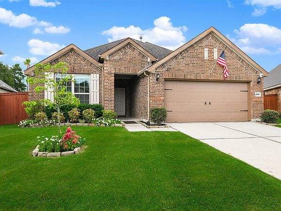 Great one story with such charming curb appeal - great floor plan with open concept. This beautiful home is in a great location on a greenbelt lot with a black iron fence along the back and a gate to the walking trail. You will love the large open kitchen featuring SS appliances, granite counters, a gas range and a large island that opens up to the breakfast room and main living area. The primary bedroom is extended with a bay window with 4 large windows and the en suite bath leads right into the laundry room for convenience. The garage has a 4 foot extension - great for the larger SUV's. This beautiful home has been gently lived in and is like new! There is a covered patio in the back that overlooks beautiful landscaping and the greenbelt path. Conveniently located close to schools, shopping and Hwy 59, IAH airport and the Grand Parkway! Schedule your showing today - No Flooding!