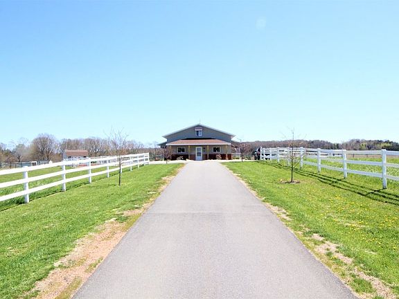 Give me that country living! Beautiful Ranchette located on 8.8 MOL fabulous acres just minutes from town. If you are looking for peace and quiet, plenty of space to get out and enjoy the great outdoors and wonderful Wisconsin scenery, this is the property for you. Fully fenced and ready for horses, livestock, or anything else one can imagine. Features a dramatic paved driveway lined with beautiful trees and pastures, leading to the home and barn. Large open main level with tongue and groove pine, laminated floors, and beautiful bright kitchen and dinette area. Lots of windows offer fabulous views and plenty of natural lighting. Large bedroom upstairs with huge closets on both sides. All appliances are included, this property is move-in ready! Large attached garage with extra high doors on both sides leads to huge barn with sliding doors, electricity, water, and a tack room.Three fenced pastures in the front of the property, large paddock areas on both sides of the barn and another large pasture in the rear, along with a fenced alleyway lead to a nice pond, huge trees, and awesome views. Big covered porch faces West for enjoying those wonderful country sunsets. Additional detached 12 x 16 shed for even more storage. Country living at its best, and at an affordable price!