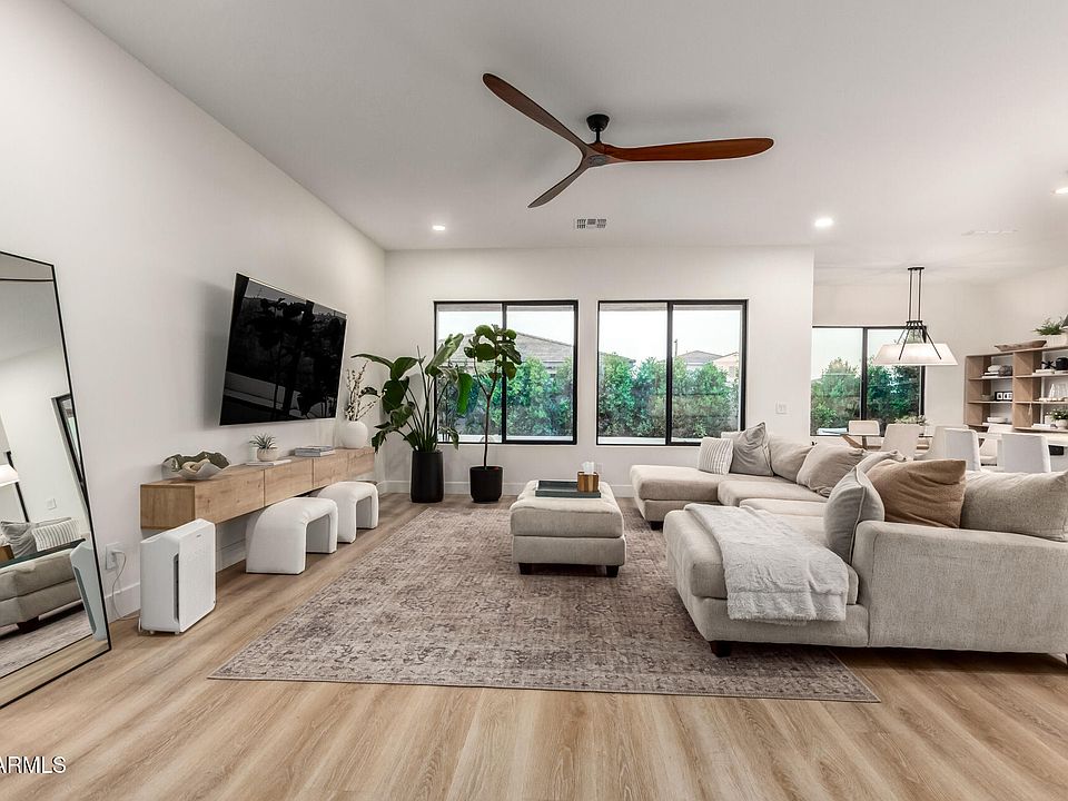 Retreat to the serene primary suite, complete with a spa-like walk-in tile shower, built-in closet system, and elegant finishes. This 4-bedroom, 3.5-bathroom home includes custom upgrades you won't find anywhere else in the neighborhood, such as striking black frame windows and smooth textured walls. The home also features a meticulously designed backyard oasis with modern pavers and a privacy-enhancing ficus-lined planter area.