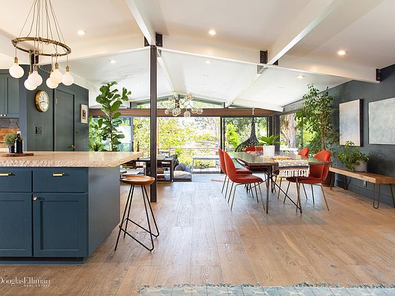 Located in beautiful Rolling Hills Estates, this 4BR/4BA 2,309 sq ft home has been painstakingly renovated by the current owners. As you enter the property, the lofted mid-century sight lines will direct your eye through an open living area and kitchen to a generous outdoor space. Accessible through retractable sliding doors covering two perpendicular walls, the large lot instantly becomes an extension of your home. Throughout the home you will discover evidence of the high-quality workmanship with which this remodel was approached. In the kitchen you will find an over-sized island topped with imported Portuguese stone, a wolf stove and accompanying custom hood, custom cabinets and shelving. In the living area, brand new hardwood flooring, a custom steel wrapped fireplace, built in shelving and custom wall mural. Continuing to the bathrooms, the detached guest suite (306 sq ft) and the surrounding landscaping, you will see that quality craftsmanship permeates every aspect of the home.
