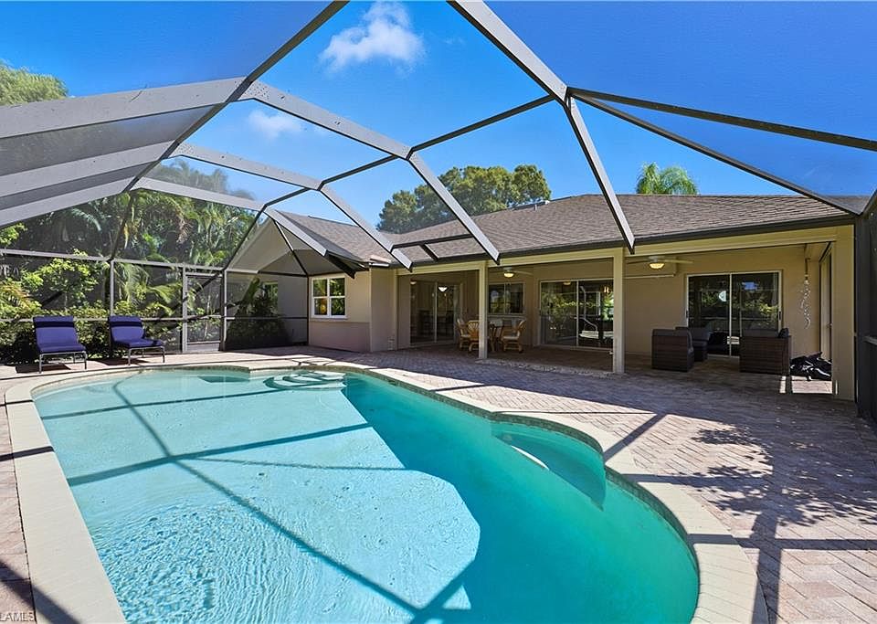 Be ready to come enjoy your winter in this 3-bedroom, 2-bathroom pool home is perfectly poised to offer you the quintessential Naples lifestyle. Nestled in a tranquil setting this residence not only boasts modern comforts but also provides a seamless blend of indoor and outdoor living, making it an ideal retreat for couples seeking a peaceful getaway. Step into the primary suite with king bed, ensuite bathroom, and walk-in closet. Guests will enjoy the comfort of a queen beds in each guest bedroom, making it perfect for families or visiting friends. The heart of this home is the open-concept family room, and fully equipped kitchen, complete with modern appliances, seamlessly integrates with person morning room table. There is also a formal dining area for 6 to entertain with family and friends. Step outside to discover your private sanctuary. The spacious covered lanai is perfect for lounging or entertaining, equipped with a table, sitting area, and grill for those summer barbecues. Dive into the sparkling pool or relax poolside while enjoying partial views of the tranquil lake a perfect backdrop for your morning coffee or evening cocktails. This property is ideally situated near Naples' finest amenities. Enjoy easy access to premier shopping, dining, and vibrant entertainment options, with the stunning white sandy beaches just a short drive away. Experience the allure of 5th Avenue, renowned for its upscale boutiques and acclaimed restaurants, all within reach of your seasonal accommodations.