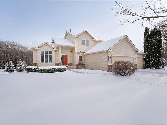 Welcome to your new home, nestled in the heart of Chaska. This stunning two-story home on a quiet cut-de-sac in demand Cortina woods neighborhood. The bright and open foyer with arched entryway and columns is sure to impress. This elegant 4 bedroom 4 bath home features, main floor home office, formal dining room, kitchen with granite countertops, center island, stainless steel appliances and plenty of storage space, sprinkler system, 3 car heated garage, large windows, central vac system, spacious open floor plan, walkout lower level, gas fireplaces in both living room and family room, inviting layout perfect for entertaining and so much more! This beautiful home offers a wonderful location close to parks, trails, shopping and easy access to Highway 212.