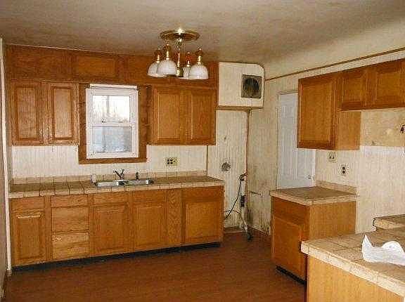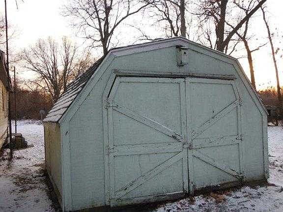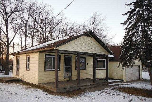 1 bedroom bungalow on dead end road. Covered front porch. 2 car attached garage with opener. Nice driveway. Block house with vinyl siding over it.