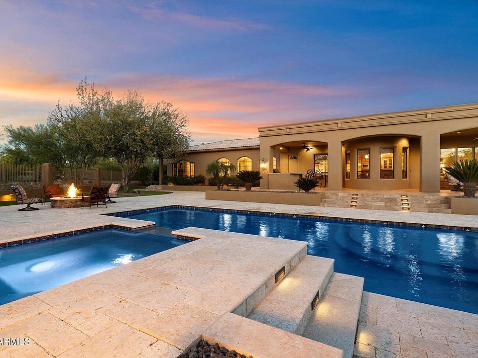 Tucked with-in gated Pinnacle Peak Estates. Extraordinary elegant home is refined Scottsdale living at its BEST! Meticulously maintained custom home of elegant design, seamlessly blends timeless architecture w/serene desert luxury. Handcrafted iron & glass entry and arched architectural details create a warm & inviting flow t/o the home. Sunlight pours through expansive windows, casting a soft glow across spacious interiors highlighting the home's exceptional craftsmanship. Kitchen is impeccably appointed w/rich alder cabinetry, granite surfaces, professional-grade appls, conveniently located wet-bar makes for seamless entertaining to family room w/gas fireplace & sliding doors to backyard. Split floorplan ensures privacy. Continue to more details... Primary suite w/sitting area & direct access to patio. En-suite bath features soaking tub, walk-in shower, custom vanities & private toilet room w/bidet. 3-bdrms (1-Bedroom could be a great office den/w walk-in closet & 2- bdrms are each with their own private en-suite bath. Backyard is lush, mature landscaping w/large sparkling pool & elevated spa. Shaded covered patios. Built-in BBQ island w/bar seating, firepit & multiple seating areas offer endless opportunities to enjoy Arizona's sunrises, star-filled evenings. This home reflects pride of ownership. Situated near Scottsdale's premier golf courses, upscale shopping, dining and hiking trails.