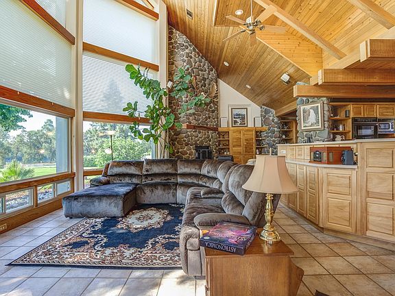 Architecturally captivating Sacramento river front home on breathtaking 2 acre parcel. Designed to display the subtle beauty of nature, this one of a kind custom home is a work of art. Soaring ceilings with natural rock fireplace and picture windows enveloping the uninterrupted views of the Sacramento River are some of the amazing features of this pastoral estate. Home features Great room, formal dining area, gourmet kitchen with breakfast bar and pantry, office/den and primary suite with access to serene patio. Separate guest wing with 2 bedrooms and bath, and exterior access from each bedroom. Guest wing has separate HVAC and can be closed off when not in use. Detached 3 car garage with additional storage and bath. Current upgrades include owned Solar, custom boat dock, garden beds and 12'x20' ADU. Lots of wildlife. Enjoy the beauty inside and out.