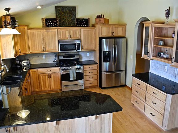 Custom built 6 bedroom, 3+ bath home nestled on 16+ acres with a 50+GPM well! You will love the open floor plan that boasts of a gorgeous kitchen, granite counters, stainless appliances, beautiful hickory cabinets and maple hardwoods throughout! Large master bathroom with garden bathtub, separate shower, and double sinks. Entertain on your back deck and enjoy all of the wildlife! Within minutes to Cheney!