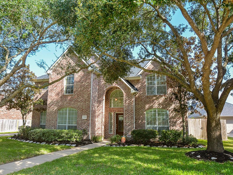 Beautiful home located in a culdesac in popular Grand Lakes. Curb appeal plus with mature trees & appealing brick facade. Walking distance to shopping, eateries and the elementary school. Multiple parks & pools for your enjoyment. Excellent schools including 7 Lakes High.The interior has a wonderful flow w/room for everyone. The study has french doors and is next to a full updated bath. The formal din.room boasts cove molding with rope lighting and opens to the sunroom which has so many opportunities to fit your needs. The Gourmet Kitchen will wow! Quartz counters, contrasting island, Quartz backsplash, new lighting and an island prep area. The corner windows highlight the breakfast room. Cathedral style family room ceiling. Hardwoods, tile and new carpeting. Plantation shutters. The updated primary bath has a free standing tub,separate shower, dbl sinks and quartz counters. Upstairs 2 more baths and 3 bdrms & gm room. Lg covered patio w/ bead board ceiling. Large yard, 3 car+ garage.