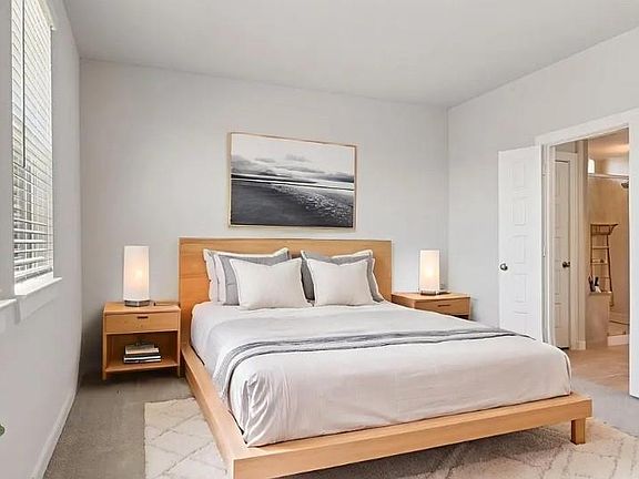 Multi-tone carpetLight brown evp flooringWhite quartz countertopsSpa-like primary bathroomWhite cabinetsRelaxing primary suiteWhite backsplash
