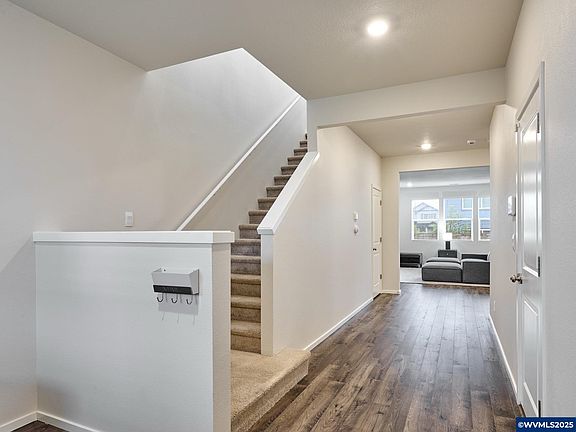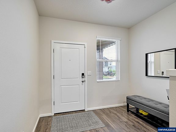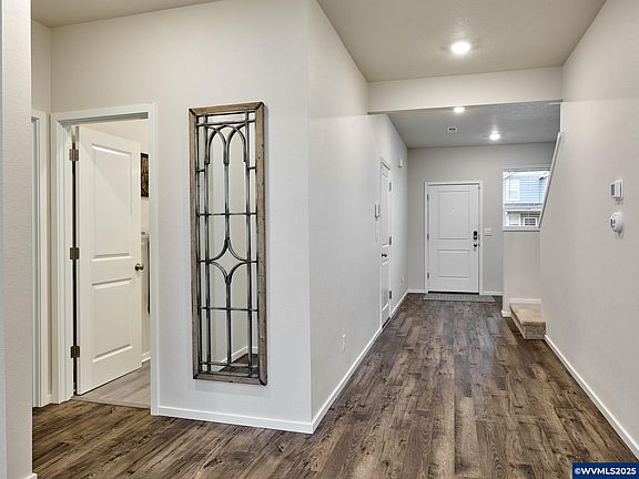 Welcome to this like-new 2022 home in Woodburn’s desirable Smith Creek Subdivision. Thoughtfully designed, this home boasts 5 bedrooms plus a bonus room, and 3 full bathrooms, including a spacious main-level bedroom perfect for guests or family. The open-concept kitchen is a showstopper with beautiful white cabinetry, quartz countertops, a large island with eating bar, and stainless-steel appliances. The primary suite is a private retreat, featuring a walk-in shower, soaking tub, and generous walk-in closet Upstairs, the bonus room offers versatile space for an office, playroom, or media area. Step outside to a fully fenced backyard with an exposed aggregate patio and lush lawn maintained by in-ground sprinklers—ideal for entertaining or relaxing. Enjoy all that Smith Creek has to offer, including a neighborhood park, paved pathways, and a low HOA fee of just $39/month. Conveniently located near shopping, bus lines, neighborhood park(s) and dog park, this home combines modern comfort with a vibrant, family-friendly community.