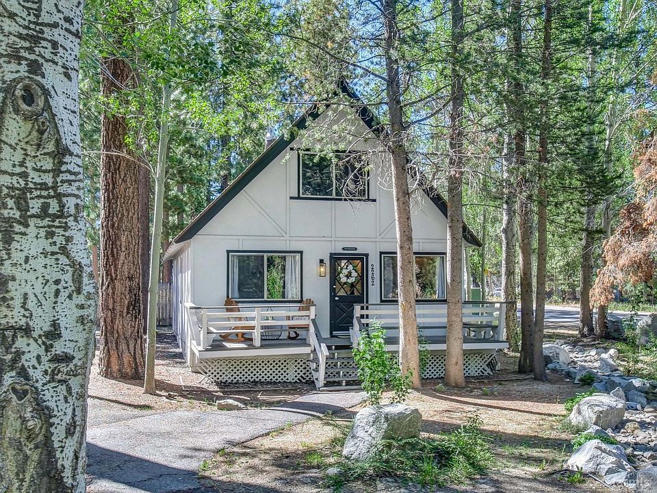 Great opportunity to own this beautiful cabin in South Lake Tahoe! With the classic styling of exposed beams, knotty pine, and high ceilings combined with modern updates, you get the best of both worlds. Walking in you notice the open layout, updated flooring, and the lovely granite encompassing the kitchen. From matching granite countertops, island, and backsplash, to the stainless steel appliances, and water/scratch resistant flooring, you can really take advantage of the modern features. With two bedrooms on the first floor and a large bedroom upstairs, there is plenty of space for family and friends. Another perk of this property is the HOA, providing exterior maintenance, snow removal, refuse, insurance, internet, TV, and a large community meadow area. Its central location offers easy access to the lake, trails, and restaurants, with the Tahoe Keys just down the street! With on-site winter snow removal, this turn-key partialy furnished property makes living here in South Lake Tahoe a breeze, even when the snow begins to fall! Don't wait, check it out today!