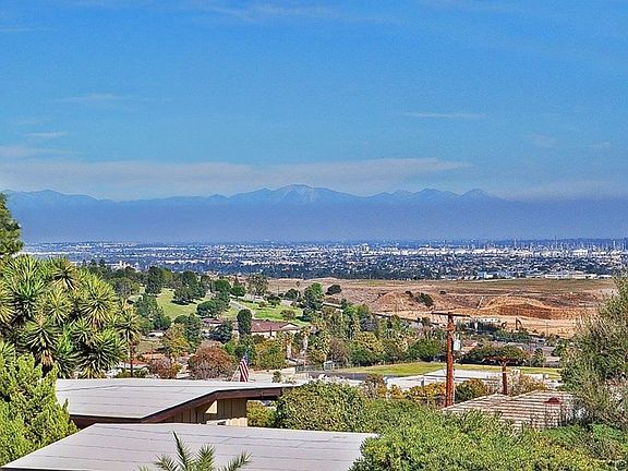 First time on the market in 54 years! Stunning Views of Vincent Thomas Bridge, Mountains and Sparkling City Lights on a large, level lot. Huge Backyard has plenty of room for a pool, is perched above the canyon and is within the Equestrian Overlay. This 4 Br/2 Ba home has no interior steps! Its open concept floor plan is open to the living, dining, family and kitchen areas, with beamed ceilings, stone fireplace and lovely patio overlooking the view. The kitchen has stainless cook top and double oven, newly painted cabinets, plus an island for storage and food prep and a bar counter with bar stool seating. Recent updates include new laminate floors in the main areas, new interior paint, new carpeting in the bedrooms, new bathroom flooring, new door knobs & cabinet knobs, & new lighting. It has Central AC and inside Laundry. There are 4 large bedrooms, one with built-in desk & shelving for office use. The Master Bedroom has beautiful views with two separate closets and an en-suite bathroom with shower and new flooring. The main bath has a tub/shower and new flooring. The 2 car garage is over-sized with a long driveway that is great for multiple parking or a place for kids to play. Located on one of the best streets in RPV, with its own HOA that maintains the entrance and provides neighborhood activities. Easy access to freeway, Award winning PV Schools, Close to Jack Kramer Tennis Club, Rolling Hills Country Club (just completed), Trump National Golf Course & Terranea Resort!
