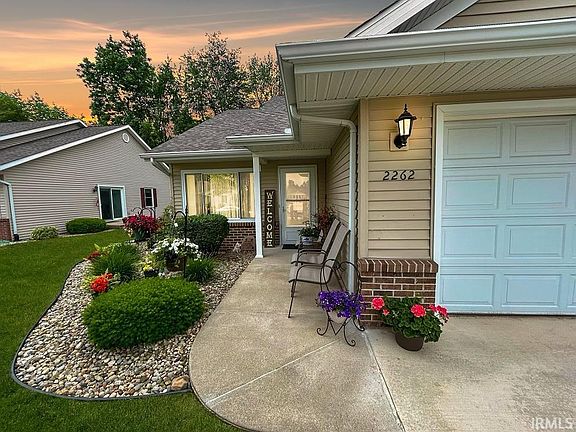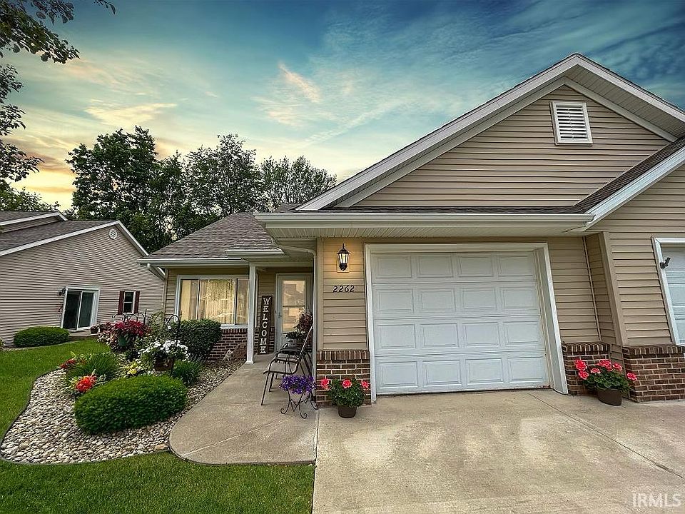 Say hello to stress free living! Welcome to this immaculately kept, modern condo located in the sought after 50 & older Silver Fox community. Immediately upon arriving, you'll be pleasantly surprised by the inviting and colorful landscaping tended by the association where curb appeal is highly prioritized. Enjoy the assurance that your lawn care, snow removal, landscaping, and many other exterior features are taken care of for you, leaving you free to enjoy every moment of your new stress free lifestyle. Inside, you'll be greeted by vaulted ceilings and an abundance of natural light creating an open and airy atmosphere. Modern updates include: a newer roof (2020), driveway (2022), sliding glass patio door and picture window (2023), beautiful vinyl flooring, and updated white kitchen cabinetry make this completely turn key allowing you to seamlessly transition into your new home. The master bedroom accommodates a spacious en suite bathroom with an expansive walk in closet. As you step into the one car attached garage, you'll notice an ample amount of cabinetry perfect for all of your storage and organizational needs. Conveniently located near Martins grocery, Menards, the YMCA, Lutheran and Parkview hospitals, the movie theatre, and right off of US-30 where everything you could possibly want/need is just moments away. Don't miss the opportunity to make this your home sweet home – schedule your showing today & experience the epitome of comfortable, carefree living at its finest.