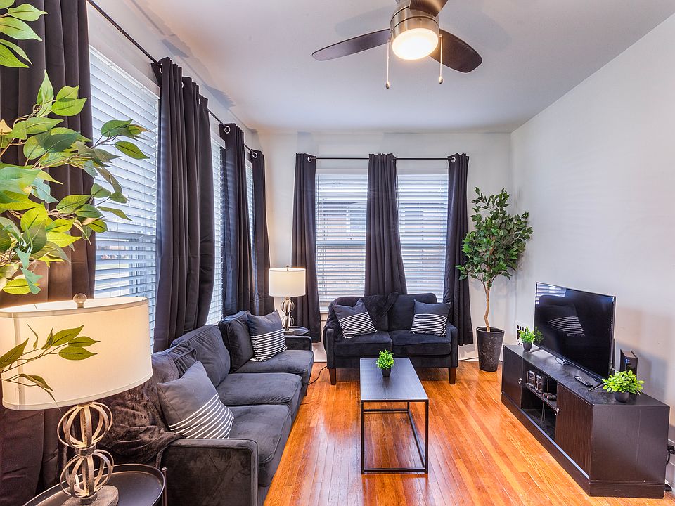 Large fenced in backyardCozy and elegant furnishingsBlackout blinds and curtains