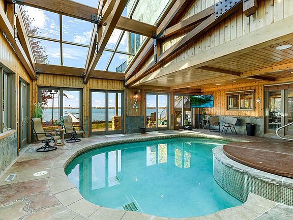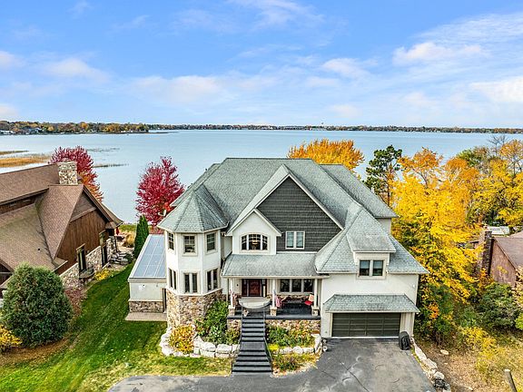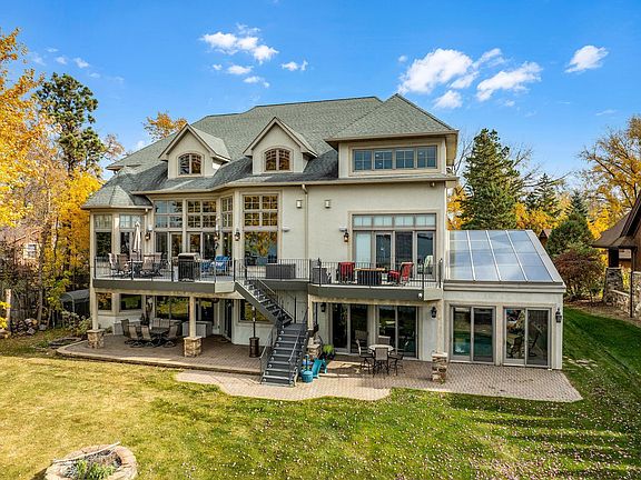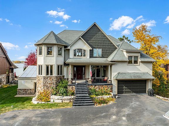 Additional features include 10-foot main floor ceilings, central vacuum, full security system with and intercom systems, smart thermostats, Crestron lighting system, ethernet and 2 wifi boosters, osmosis water treatment system, in-floor heating in the lower level and bathrooms, three separate furnaces, three laundry rooms, three fireplaces, epoxy-floored heated garages (two car attached with in floor heat and trough drain, three car detached with a 544 sq. ft. bonus room with living quarters), and a whole-house generator for peace of mind. Don’t miss your chance to own this one-of-a-kind luxury retreat on Forest Lake, offering the best in privacy, amenities, and waterfront living.