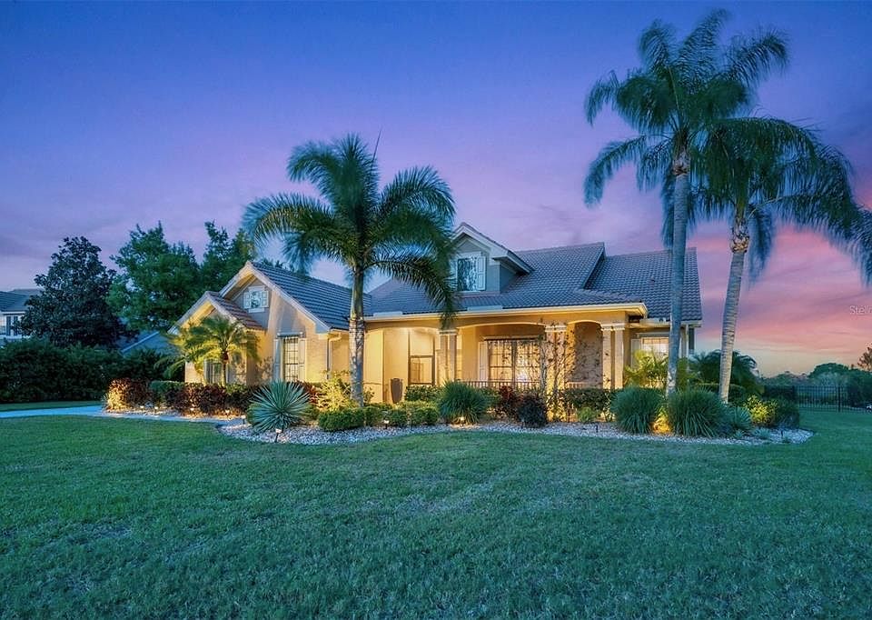 **Upgrades* - *new tile roof, *newer A/C, *new appliances, *new paved driveway, *new backyard fence,*salt pool, *new seamless gutters, *down spouts, *new main electrical box, *new lanai pool screens, *upgraded irrigation system, *new well water tank, *new garage door, *new lighting rods on the roof *upgraded switches, *septic tank serviced, * new thermostats, *solar tubes in kitchen, *new cabinets in laundry room, *hurricane shutters and hurricane rated garage doors provide peace of mind. This stunning 4-bedroom, 3-bathroom home in the exclusive Preserve at Panther Ridge offers a perfect blend of luxury, comfort, and privacy. Designed by renowned architect Arthur Rutenberg, the home is set on a generous 1.35-acre lot with breathtaking lake views. The moment you step through the beautifully *crafted wood door, you’ll be welcomed by an open and airy floor plan, ideal for both relaxation and entertaining. The home features a spacious living room, dining room, and a large bonus room, along with an office/den. High-end finishes throughout, including *tile and wood-inspired flooring, tray ceilings, and crown molding, create an elegant atmosphere. The gourmet kitchen is a true chef’s dream, featuring solid wood cabinets, granite countertops, stainless steel appliances, an island, a breakfast bar, and a separate eat-in area with a solar light that brightens up the space. The master suite offers a serene retreat with *new wooden flooring, sliders to the pool area, and walk-in closets. The spa-like master bath features dual sinks, granite countertops, a walk-in shower, and a separate garden tub. The thoughtful split plan includes two large bedrooms and a bath, plus a fourth bedroom with a private bath and entrance, perfect for an in-law suite. The outdoor living area is a true highlight, featuring a pool, spa, and outdoor kitchen, as well as a private, fenced backyard with a fire pit, ideal for relaxing or entertaining. The Preserve at Panther Ridge offers an active community lifestyle with scenic walking trails, parks, a playground, basketball courts, and tennis courts. Conveniently located near Waterside, Lakewood Ranch Main Street, and UTC Mall, with easy access to shopping, dining, and entertainment options. This exceptional home offers the perfect blend of luxury living and convenience—don’t miss the chance to make it yours!