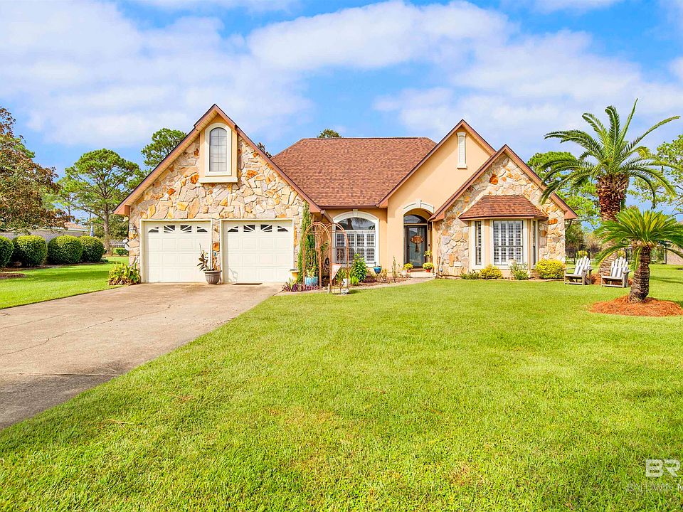 Welcome to the beautiful community of Glenlakes nestled just East of the Beach Express in Foley! This charming residence, accented with beautiful stonework, offers both comfort and convenience—just minutes from OWA, shopping centers, recreational areas, and a variety of restaurants.Boasting 3 spacious bedrooms and 2 and a half bathrooms, this home is designed for both relaxation and functionality. The kitchen features solid wood cabinetry, complemented by an adjacent dining room and a separate breakfast nook—perfect for overlooking the golf course in the morning. The primary suite features crown moldings, space for a sitting area, and a complete en-suite bathroom with a separate shower and tub, double vanity, and a walk-in closet. The two guest bedrooms share a convenient Jack and Jill bathroom, ideal for family or visitors.Additional highlights include a central vacuum system with toe-kick floor sweep, ceiling fans throughout, a double garage, and a fenced backyard overlooking the 5th hole of the Glenlakes Golf Course.This is a must-see opportunity for those seeking comfort, style, and a golf course lifestyle in one of Foley’s amazing subdivision.Schedule your private showing today! Buyer to verify all information during due diligence.