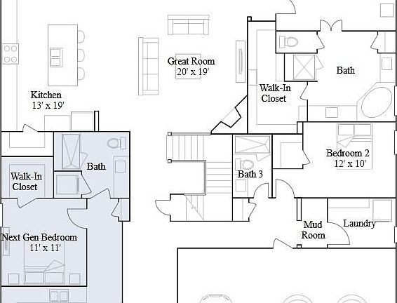 NEW!!! Village Builders Wentworth Collection Chatham design with Elevation "B" in Bridgeland! This two-story residence is a Next Gen® home design that is great for all kinds of living situations featuring a private suite with its own kitchenette, living room, bedroom, bathroom and personal entrance. In the main home, two bedrooms, including the owner’s suite and an open living area make up the first floor. Upstairs are three bedrooms, a lofty bonus room and optional media room.