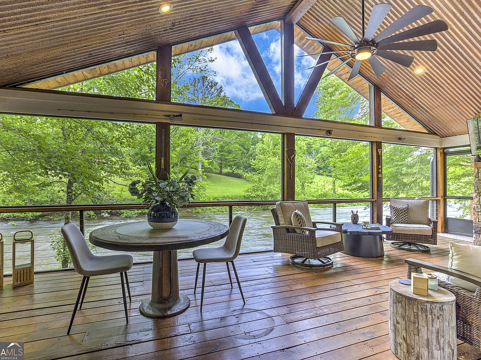 Nestled just a few steps from the trout-filled waters of the Toccoa River in the coveted Aska Adventure Area, this charming 2-bedroom, 1-bath cabin offers the ultimate North Georgia retreat. Fully renovated in 2021, the home blends modern comfort with rustic charm-featuring warm wood finishes, cozy interiors, and large windows that frame the peaceful river views. The expansive covered porch sits just above the water's edge, fully screened-in with an outdoor fireplace and built in heaters to allow for year-round usage. With over 300 feet of level, usable frontage on the pristine Toccoa, the property provides a rare combination of beauty, privacy, and accessibility. Offered turn-key and fully furnished, this cottage is currently part of a successful rental program, boasting an impressive 80%+ occupancy rate and a strong rental history-making it an ideal investment or personal getaway. Whether you're seeking a weekend escape, a full-time riverfront lifestyle, or a proven income-producing property, this Toccoa River cottage delivers the perfect blend of tranquility and opportunity-just minutes from the shops, dining, and charm of Downtown Blue Ridge.