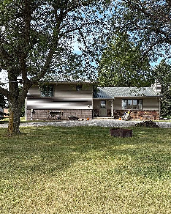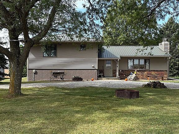 Property details: 5 acres, 1,350 sq. feet, 3 bedrooms, 1 bathroom with 1 plumbed in the basement, attached 2 car garage. House Features: Large kitchen with all appliances staying. Countertop bar with seating for two. Large dining area off of kitchen with sliding glass doors to a 16'x16' cement patio. Cozy living room features a floor to ceiling beautiful brick gas burning fireplace. The living room has a large bay window that provides natural light and stunning views of the countryside. Partial finished basement provides additional living space for a family room, office, or gym. A second bathroom is plumbed in. Recent upgrade: new central air conditioning (2021).