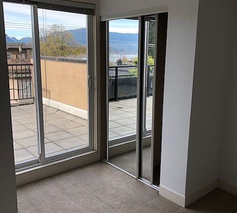 Top-floor corner condoDowntown skyline viewsIndoor-outdoor livingNorth shore mountainsPrivate terraceSun-filled comfortExpansive private terrace