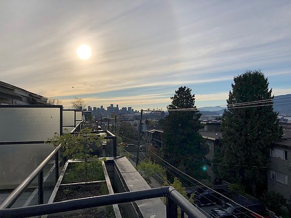 Keywords for search visibility: 1 bedroom condo for rent Vancouver, East Village rental, Hastings Sunrise apartment, penthouse patio view, private terrace, pet-friendly condo