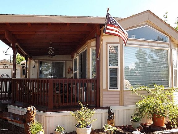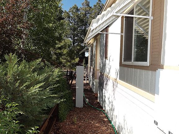 Pristine 2003, 589 SqFt Cavco in the private community of Pinecrest Lake in the Rim Country of Overgaard. This home offers a large North facing front window, easy work around kitchen with lots of cabinetry and GE appliances, bull nose tiled counter tops, built in china and curio cabinets, surround sound with CD player, berber carpeting, two skylights, tinted dual pane windows, five ceiling fans, central heat and cooling, and a 10x16 room addition that can be used as an extra sleeping area or family room. Equally impressive, the exterior boasts 200 SqFt of covered decking, and a 40 SqFt extended uncovered deck, gutters and downspouts, cement pavers and a 8x14 finished and insulated utility building. Masterful and meticulous landscaping exudes pride of ownership. Comes furnished.