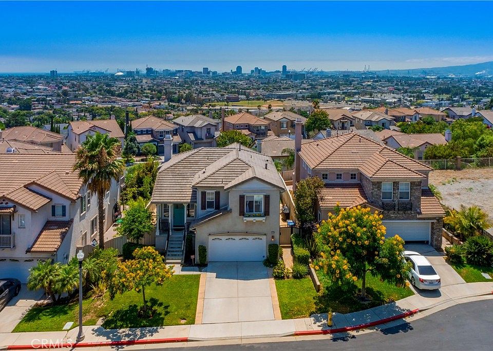 Reduced $100k. EXCEPTIONAL VIEWS of the Ocean, Catalina Island, Downtown Long Beach and Palos Verdes from this remarkably functional and clean split-level home. Watch the sunsets shower the living room in the evening, the twinkling city lights at night, and panoramic fireworks displays on the 4th of July! Perched on top of the Westbluff Estates community, this home features the living, dining and kitchen area on the top floor giving you beautiful views from the most often used living spaces. The upstairs master bedroom features an organized walk-in closet and a large bright executive bath. The master bedroom also features serene views of the hillside with no neighbors across the street. A trail head directly in front of the home gives you close access and a brief walk to the community pool, spa, and BBQ area. Easy to use features like the automatic blinds, smart controlled porch and ceiling lights, and electric car charging in the finished garage provide extra security and comfort. Amazing opportunity to own a detached home with remarkable Southwesterly views!