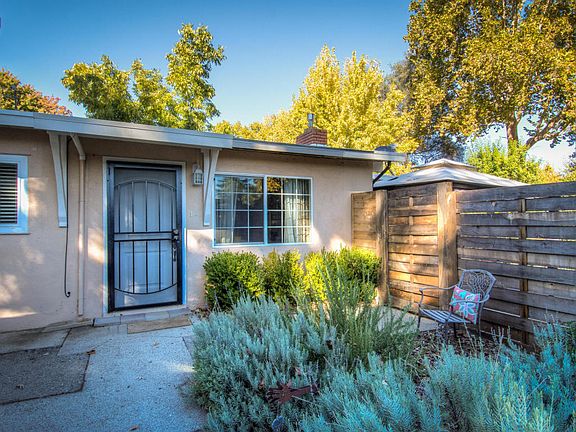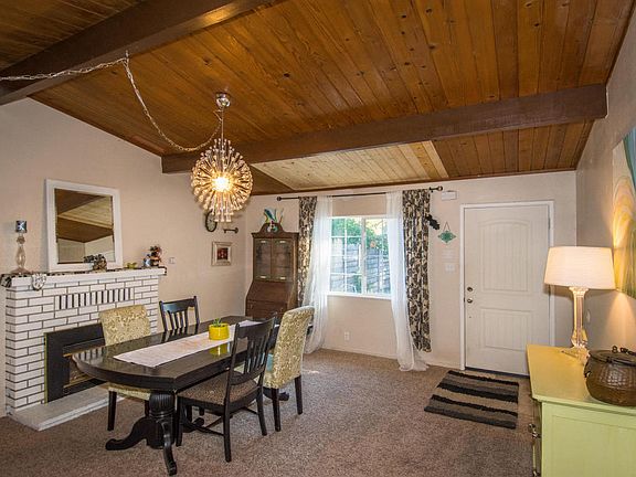 Adorable bungalow home is move in ready! The professionally landscaped courtyard instantly welcomes you in. Walk through the front door into open beam ceilings & an open concept floor-plan. Features included plush carpeting, open kitchen, living room with a fireplace, large family room/den, upgraded bathrooms and dual pane windows. Plus there's a private and spacious backyard with many fruit trees