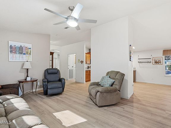 Beautiful Home in Sought-After Rancho Val Vista Community. Welcome home to this beautifully maintained property located in the highly desirable 55+ community of Rancho Val Vista. This partially furnished home offers the perfect blend of comfort, style, and convenience — with owned solar that will be paid off at closing! Step inside to discover new flooring throughout, new appliances, and an open-concept layout ideal for everyday living and entertaining. The exterior was freshly painted just a year ago, and the home is equipped with a soft water system, reverse osmosis water system, and a newer drip irrigation system for easy maintenance. The spacious floor plan includes 2 bedrooms plus a den, which can easily serve as a third bedroom, home office, or hobby space. Off the primary suite there's a craft room and additional storage. offering endless flexibility for your needs. Outside, you'll enjoy a nicely landscaped yard and a large storage shed for added convenience. Rancho Val Vista residents enjoy exceptional amenities including a pool and spa, game room, pickleball, shuffleboard, cornhole, fitness area, and even a four-lane bowling alley making this an active and welcoming community you'll love to call home.