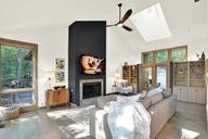 Peaceful wooded neighborhoodHot tubModern kitchenLuxurious primary suitePrivate home officeLarge skylightsFloor-to-ceiling windows