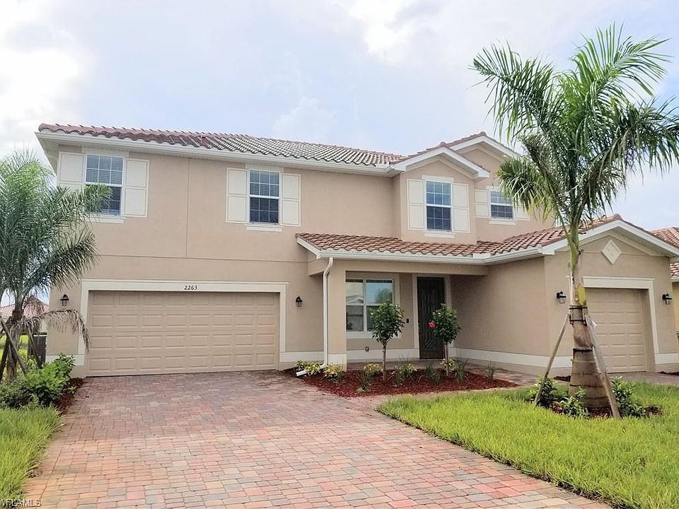 New Construction in Naples at only $120 per sq ft! Lennar Homes Sorrento floor plan is our most popular, 2-Story Home in the Manor Series, and offers huge size and bang for buck! Huge Master Bedroom, Upstairs Bonus Area overlooks the main level, and kitchen living great room concept makes entertaining awesome! Everything's included from blinds to appliances, crown molding, granite, cabinetry, tile, and more! Orange Blossom is located in the future of Naples, and has the most incredible return on lifestyle in all of Naples including 2 Resort Pools, 2 Spas, 2 Basketball, 2 Tennis, 2 Playgrounds, Splash Pad, Social Clubhouse, Fitness Center with Kids Play Area, Full Catering Kitchen & Bar, Sand Volleyball, Fishing Pier and more at dues of only $235 per month! Booming area, ground floor opportunity! Full price of the home is $417,297, Listing price includes special builder incentives for August end of quarter!
