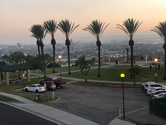Top-of-the-Hill location inside gated community of Promontory with panoramic 180°+ views from Palos Verdes to Santa Monica to Downtown LA and the mountains. Updated 4 bedroom 4 bath home with tiled entry that opens to spacious living room. The formal dining area leads to the gourmet kitchen with tiled center island, double stainless steel sink, dishwasher, granite counter tops, microwave and more. The kitchen overlooks the bright & airy family room with gas stubbed wood burning fireplace & rear door that opens to the large backyard with panoramic views of the Long Beach Harbor, Palos Verdes to South Bay. Direct access to the 2 car attached garage. There is a bonus room/den off of the kitchen next to the guest bedroom (or downstairs master) with full bathroom. The main staircase opens to a landing & the main hallway with a built in desk/work area. Laundry room with laundry sink & storage off of the main hallway. 2 bedrooms (each with their own private full bathrooms), plus the master suite with a large master bath with spa tub, separate tiled shower, walk-in closets, gas fireplace, sitting area and private balcony with incredible views. Promontory offers gated entry and a community pool/recreation area and is adjacent to miles of walking trails.