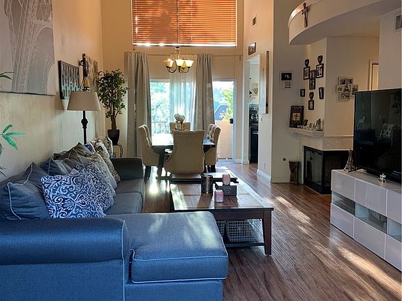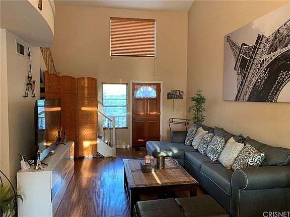 FHA Approved! Come and see this well maintained Townhome that is located in a great Saugus neighborhood. This 3 bedroom, 2 bath property has beautiful wood floors throughout, has a large inviting living room with high ceilings and fireplace, has a good sized dining area for entertaining, and an updated kitchen with new counter tops, back splash, stainless steel appliances, and refreshed kitchen cabinets. The master bedroom is large with high ceilings, a walk in closet with cedar wood paneling, and the master bathroom has been updated with counter tops, a modern sink, and a vanity. The 2nd bathroom has also been updated, there is a loft upstairs that was converted to a 3rd bedroom that has been recently upgraded, there is a private laundry area located in unit hallway, and there is an attached 2 car private garage with room storage. The unit also features a balcony with views and a tree for privacy, and the HOA has a community pool and has several walkways that are nice to walk around in this well maintained community. Show and sell today! Seller has found their home of choice and are waiting for your offer!