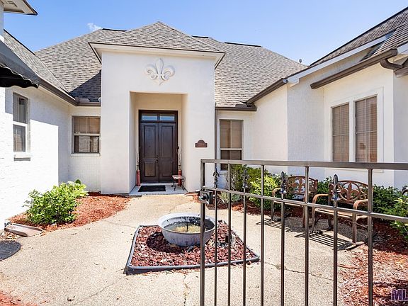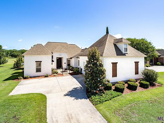 Enjoy the lifestyle and the great country atmosphere! This one has an inground pool with waterfall, rear porch, outdoor kitchen, and a great view of the golf course. Enter through the large, landscaped lawn and courtyard with wrought iron fence & gate. Next, you will be awed by the beautiful view as you proceed into the open & spacious living and dining rooms with the double-sided fireplace, polished concrete floors, crown molding and gorgeous custom drapes. The designer kitchen features stainless steel appliances, gas range, refrigerator, large island with seating, granite counters, pantry, bead board ceilings and cypress beams. The luxurious primary bedroom has a lovely ensuite bath. The 4th bedroom is presently used as a home office. Don't miss the so enjoyable theater room that comes with all equipment and seating. All bedrooms have extra-large closets. Much updating was done with interior designer assistance and includes exterior and interior paint, stained beams, whitewashed interior bricks and more. The list of amenities goes on and on. See it today, enjoy the lifestyle it offers tomorrow.