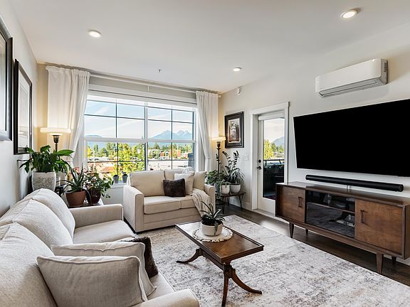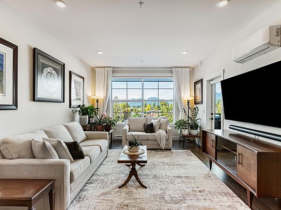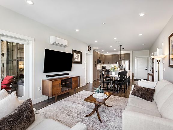 Mountain viewsOpen concept livingModern functionBright and airyLoaded quartz island kitchenGas rangeUndercabinet lighting