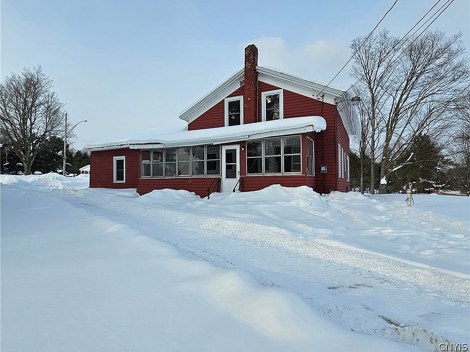 Prepare to get excited about this price point with waterproof vinyl laminate flooring and all the sprucing up and painting completed on the first floor of this 1600+ square foot home. The 2 year old roof eliminates that worry and it has been recently surveyed. Walk into a large multi-use room from the extra long one stall garage or from outdoors with plenty of space to add an ample closet if desired. Next you enter the kitchen area with a potential breakfast room on one end and possibly a more formal dining room on the other end...you decide. Round the corner and enter the very large living room for you to create many different layout possibilities! Proceed up the stairs with half a bath, one bedroom and a good sized closet on your right and two connected rooms on your left. All of the upstairs could use a little love and paint and is awaiting your finishing touch. Lastly enjoy the 3 season porch for that bit of extra seasonal space to enjoy!