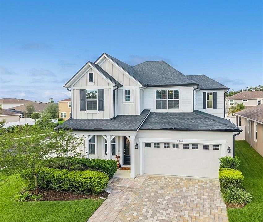 Welcome to 2264 Farnham Drive, located in Ocoee’s sought-after Preserve at Crown Point neighborhood! Built in 2020 by Mattamy Homes, and well-maintained by the original owners, is a beautiful four-bedroom, two-and-a-half-bath farmhouse-inspired residence sits proudly on a coveted corner lot. You’ll love the fully fenced backyard, generously-sized paver driveway, and two-car garage providing plenty of off-street parking. From the moment you arrive, the inviting front porch and sunny foyer set the tone for this bright, welcoming home. A convenient downstairs powder bath and versatile flex room greet you at the entrance, leading into the spacious open-concept kitchen, dining, and living areas—perfect for entertaining or everyday comfort. The kitchen features a large island, granite countertops, stainless steel appliances, and ample workspace for cooking and gathering. Upstairs, a spacious landing connects to the impressive primary suite, complete with a luxurious bath featuring a garden tub, double vanities with granite countertops, a walk-in shower, and a generously sized walk-in closet. Bedrooms two, three, and four are all comfortably proportioned and share a full bath with granite vanity. The laundry room is also conveniently located upstairs—right where the laundry originates! Step outside to your private, fully fenced backyard with a covered rear patio, offering a great space for outdoor dining or simply relaxing in the shade. This home has it all—style, comfort, and community. Residents of Preserve at Crown Point enjoy fantastic amenities, including two playgrounds, a dog park, a sparkling community pool, and direct access to the West Orange Trail. Conveniently located near Ocoee High School, Publix, Downtown Winter Garden, and the 429, this home puts everything within easy reach. 2264 Farnham Drive is the kind of home where every day feels like a Saturday—filled with sunshine, outdoor living, and the sense of community that makes life here so special. Schedule your showing today to see for yourself!