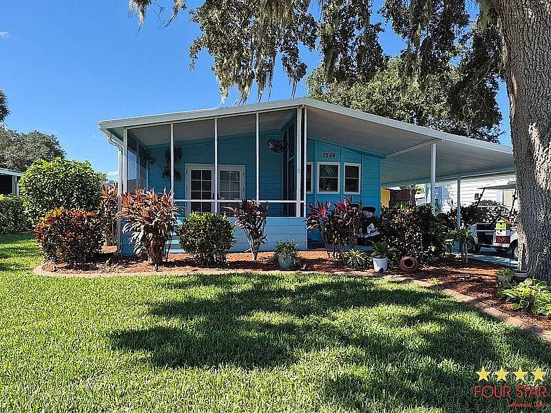 Looking for a charming home in a beautiful community? This lovely 2-bedroom, 2-bathroom home has been freshly painted inside and out and features newer double-pane windows. Updates include a roof 2015, AC 2011, water heater 2021, new electrical panel 2021, and PVC plumbing. Tie-downs under the home have been replaced, and a termite bond is in place for peace of mind. The kitchen offers stainless steel appliances and a built-in cabinet in the dining room for extra storage. You will also find newer vinyl plank flooring throughout and updated bathrooms. The laundry area includes a newer washer and dryer. Enjoy entertaining - Call Terri for private showing.