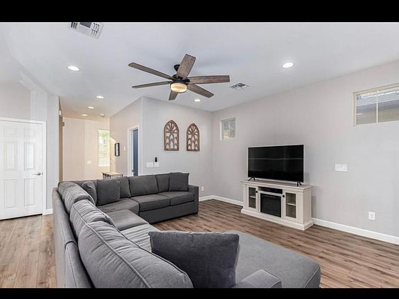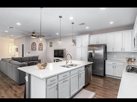 This 3 bedroom 2.5 bathroom house is located in PRIME location in Gilbert. You can walk across the street to Verde at Cooley station where they have Hash Kitchen, Crust, The Brass Tap and many more restaurants! You can walk out your front door where there's a long green belt and a playground. You can sit from your front porch and watch your family play.