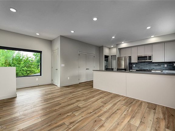 Incredible opportunity to live in a new build carriage house in an ideal central Duck Island location! Just a short distance from incredible amenities like the Velvet Tango Room, Forest City Brewery and the West Side Market, this striking home has all the upgraded finishes you want in a perfect private location. The ground floor is a good sized one car garage. Then up the stairs to the open floor plan living room/ kitchen with sizable breakfast bar with quartz counters, attractive custom tile backsplash and stainless appliances throughout. Then on to the bedroom with more attractive finishes and loads of natural light. Finally, appreciate the convenience of a full laundry closet in unit. The outside space includes a private back patio. All utilities except internet are included in monthly rent.