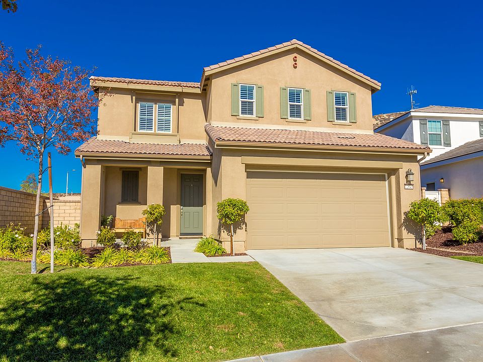 Beautiful cul-de-sac home in the gated community of River Village. This incredible home features a large kitchen with a sit up island, custom cabinets, granite counter tops, all stainless steel appliances, double oven, 5 burner cook top is the perfect place to entertain. The kitchen opens to your light and bright family room with cozy fireplace. The formal dining and living areas are open and bright . Upstairs you will find a HUGE loft perfect for a playroom, media or gaming room. This home has a full bedroom and bath downstairs and 3 additional bedrooms and an extra large master suite. Gorgeous hardwood flooring, upgraded carpet, plantation shutters, ceiling fans, crown molding, granite and hard wired for Cat 5 cable throughout. Master bath with double vanity, separate shower,soaking tub and his and hers walk in closets. The landscaped backyard boasts over 11,000 sq foot so you have more than enough room to add a pool and so much more. 3 car garage. River Village is a perfect location close to schools, shopping and freeways. Welcome Home!